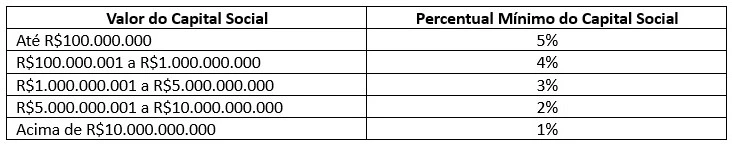 passarão a poder ser exercidos por acionistas minoritários de companhias abertas com participações decrescentes em função do valor total do capital social, conforme a tabela abaixo.